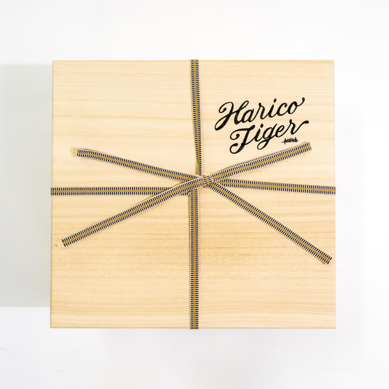 HARICO TIGERは一つ一つ専用の桐箱に入れて作品証明書と共にお届けします。紐を解き、あなたの大切な一つに出会ってください。